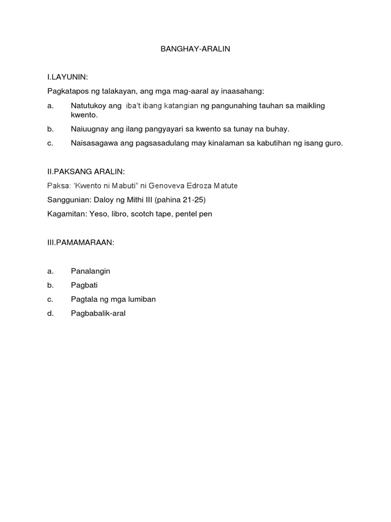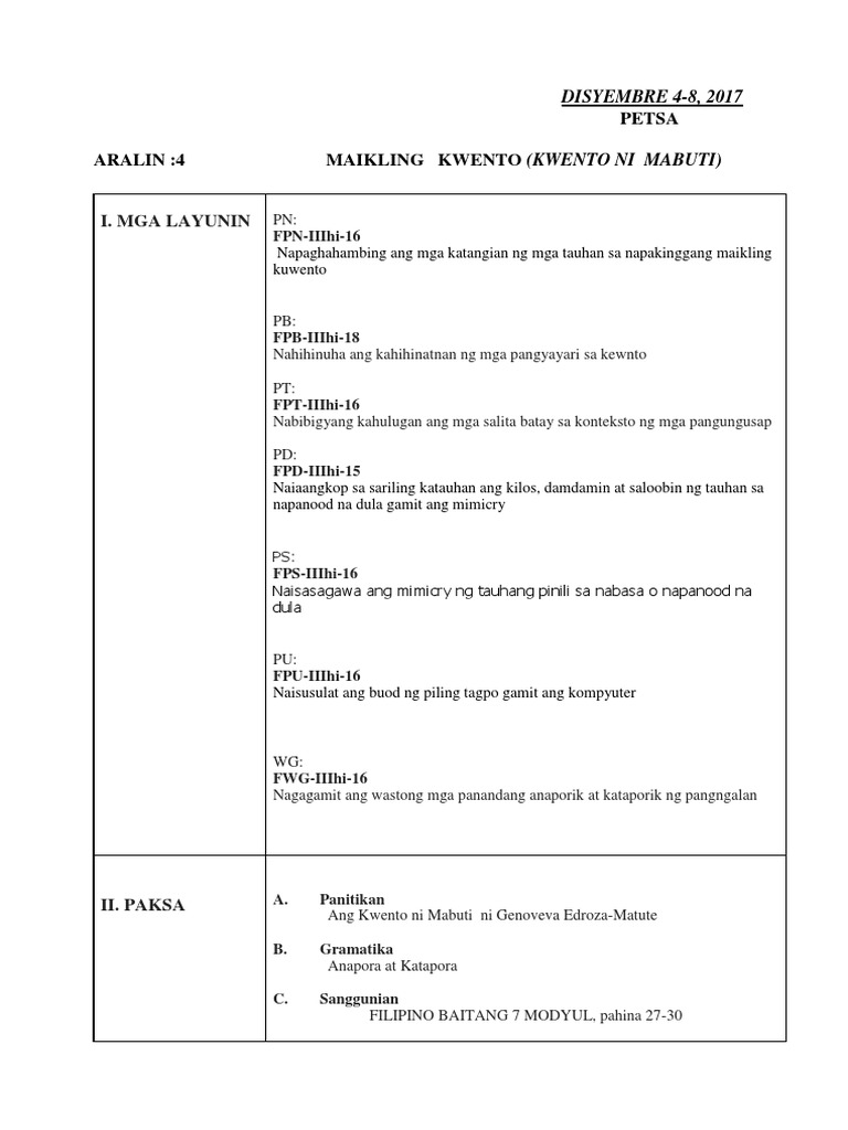 Maikling Kuwento Ni Mabuti Gabay Sa Pagbasa