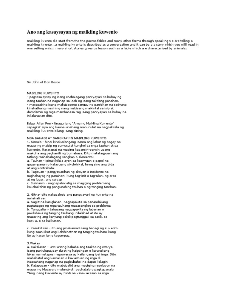 Kaligirang Pangkasaysayn Ng Maikling Kwento Docx
