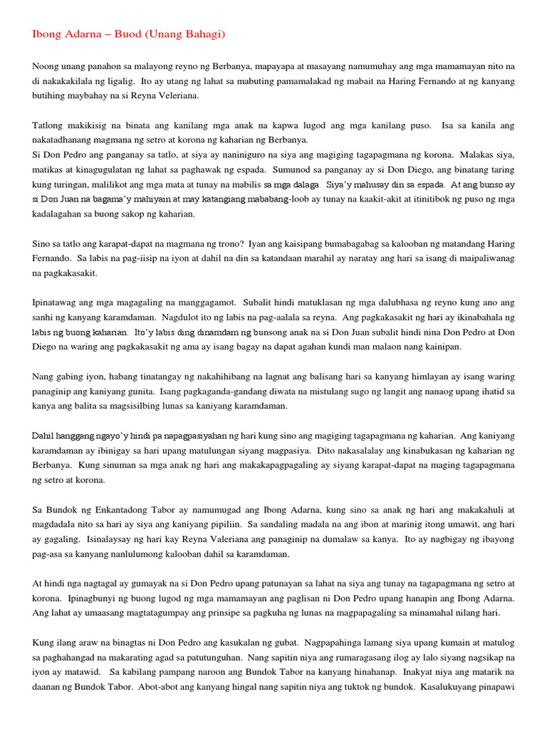 Doc Buod Ng Ibong Adarna Christian Jay E Fiel Academia Edu