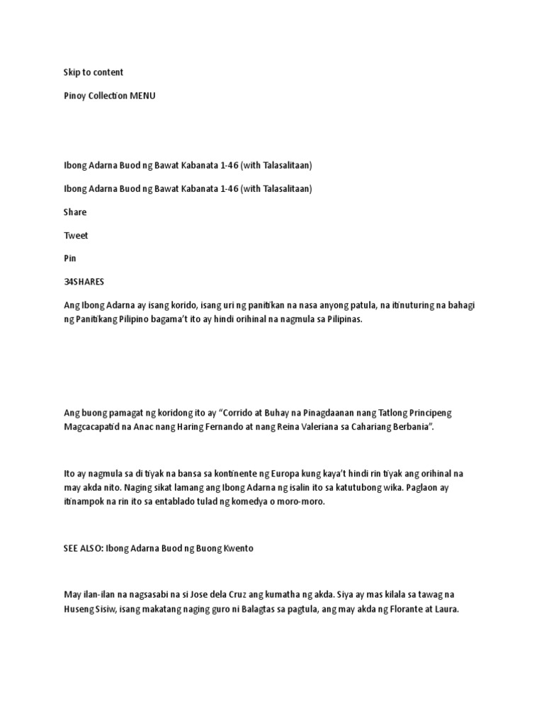 The tale is also known as The Aderna Bird. Ibong Adarna Buod Kabanata 34.