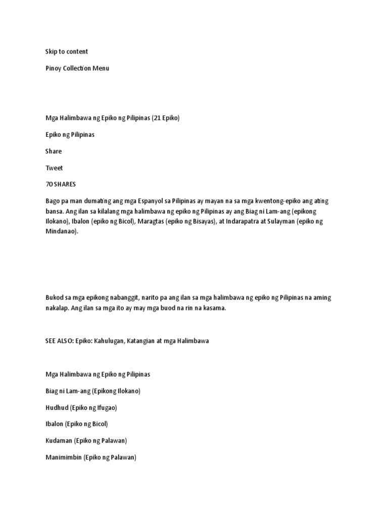 Mga Halimbawa Ng Epiko Ng Pilipinas 21 Epiko With Buod Pinoy Collection