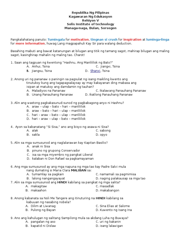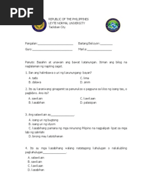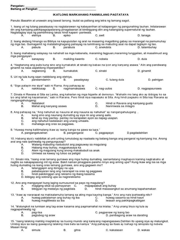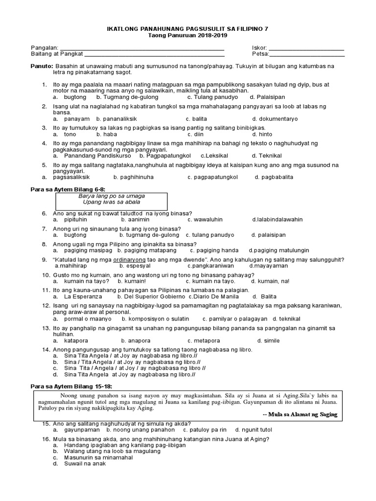 3rd Quarter Exam In Filipino 7 10 Docx