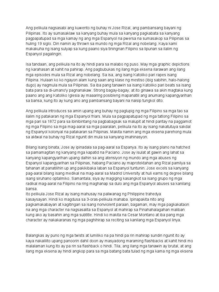 Jose Rizal Ang Buhay Ng Isang Bayani Reaction Paper