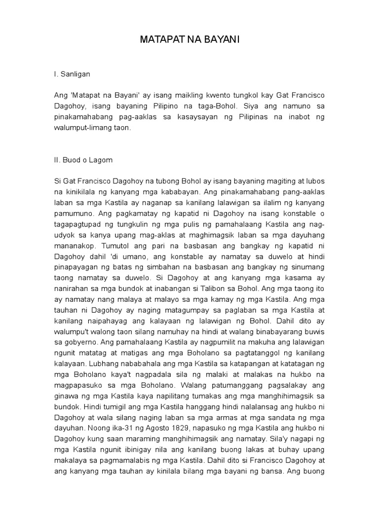 Alam nilang nagapi sila ng mga Kastila ngunit ibinigay nila ang kanilang buong lakas at buhay upang makalaya sa pagmamalabis ng mga. Ang landas ay hindi sinabi ng Diyos. This feature is not available right now.