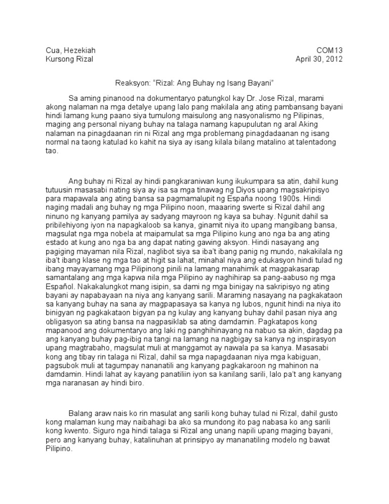 Reaction Paper Ang Buhay Ng Isang Bayani Docx Reaction Paper Ang Buhay Ng Isang Bayani Batay Sa Aking Napanuod Na Pinamagatang Ang Buhay Ng Isang Course Hero