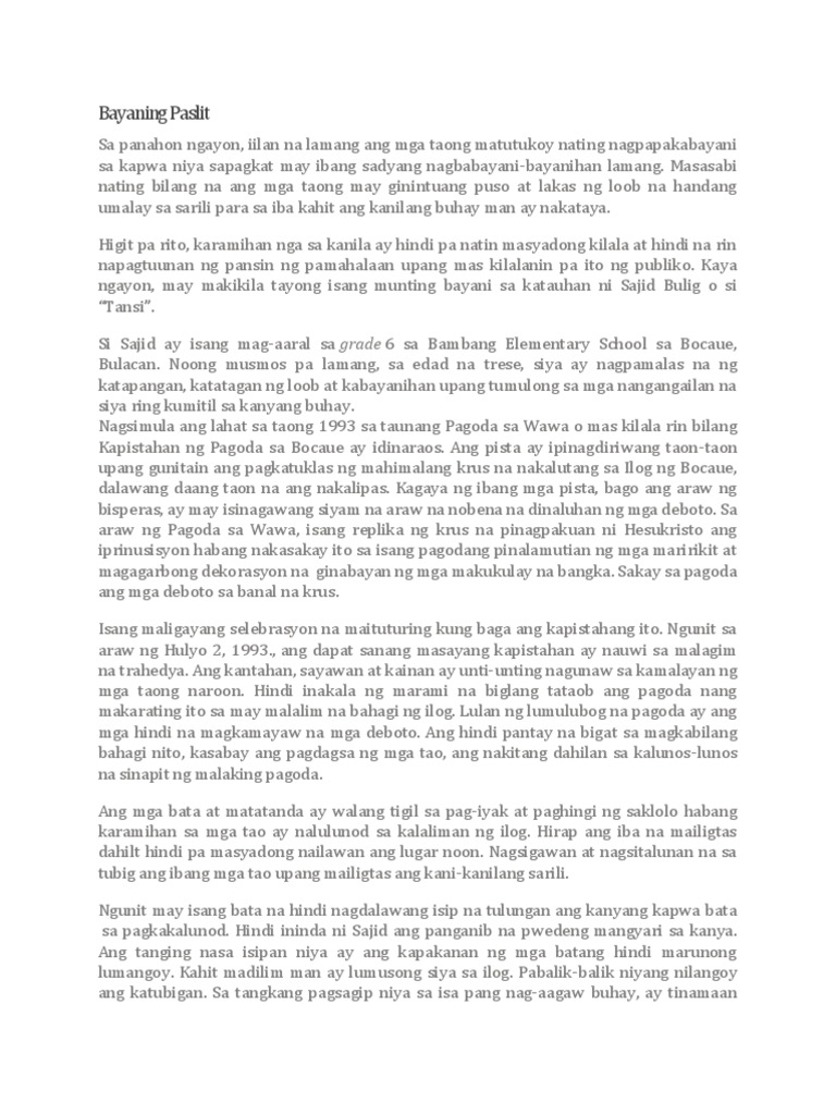 Mga kwento ng mga tinaguriang Bagong Bayani ang mga OFW Overseas Filipino Workers. Wala silang laban sa mga armas at mga sandata ng mga dayuhan. This military-issued regulation established the interment policy that would become the basis for the burial of personalities at the Libingan ng mga Bayani.