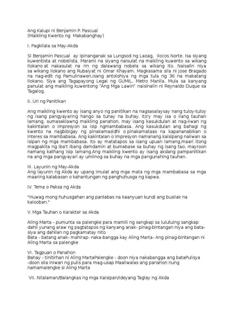 Ang Kulapi Docx I Pagkilala Sa May Akda Ang Kalupi Benjamin P Pascual Ang Nobelistang Si Benjamin P Pascual Ay Ipinanganak Sa Lungsod Ng Laoag Ilocos Course Hero
