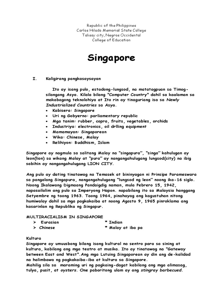 Ano Ang Pagkakatulad Ng Bansang Pilipinas At Singapore Brainly Ph