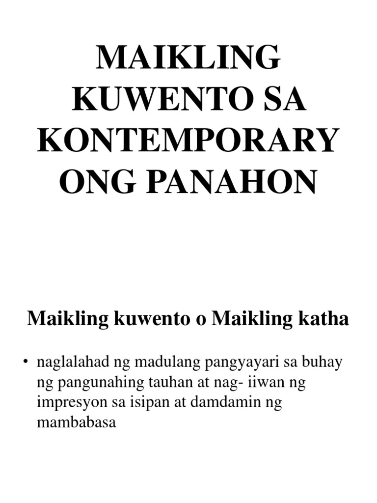 Maikling Kuwento Sa Kontemporaryong Panahon