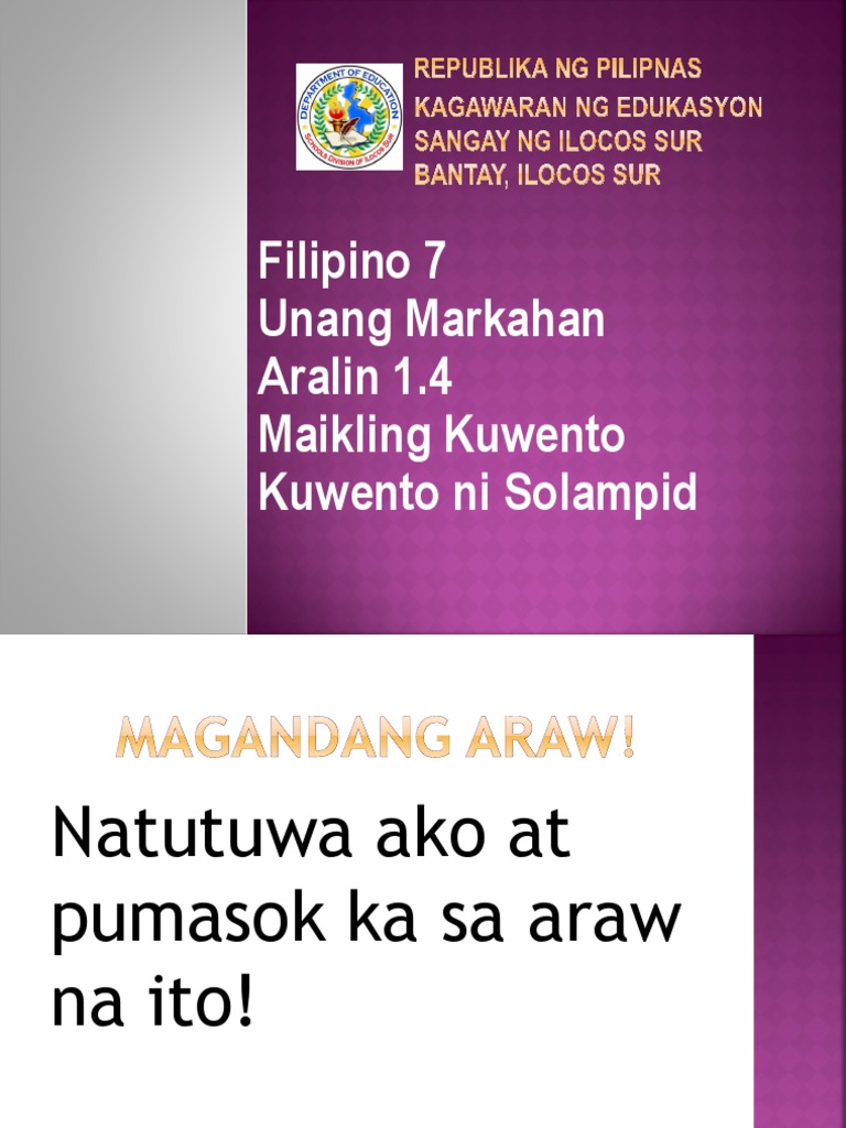 Filipino 7 Unang Markahan Aralin 1 4 Maikling Kuwento Kuwento Ni Solampid