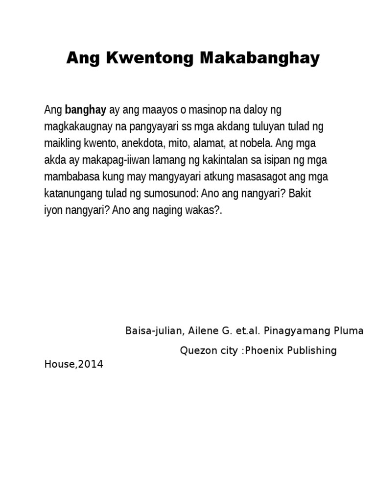 From professional translators enterprises web pages and freely available translation repositories. Kwentong makabanghay Ang ama. Banghay maayos o masinop na daloy ng mga pangyayari sa mga akdang tuluyan balangkas ng akdang pasalaysay tulad ng maikling kwento pinakamasidhing bahagi kung saan haharapin ng.