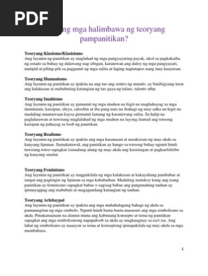 83 83 found this document useful. Ipinaglalaban ng teoryang realismo ang katotohanan kaysa kagandahan HALIMBAWA NG MGA AKDA 1. Santos Pakikidigma ni Jose Corazon de Jesus Ang Ulap ni Ildefonso Santos 4.