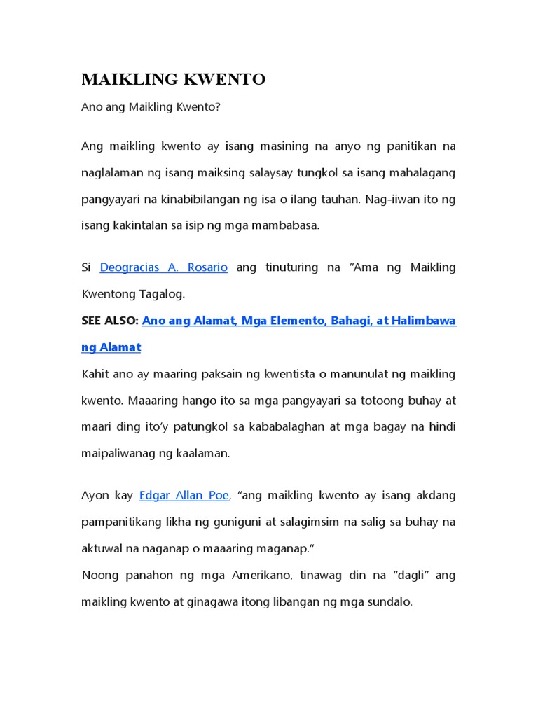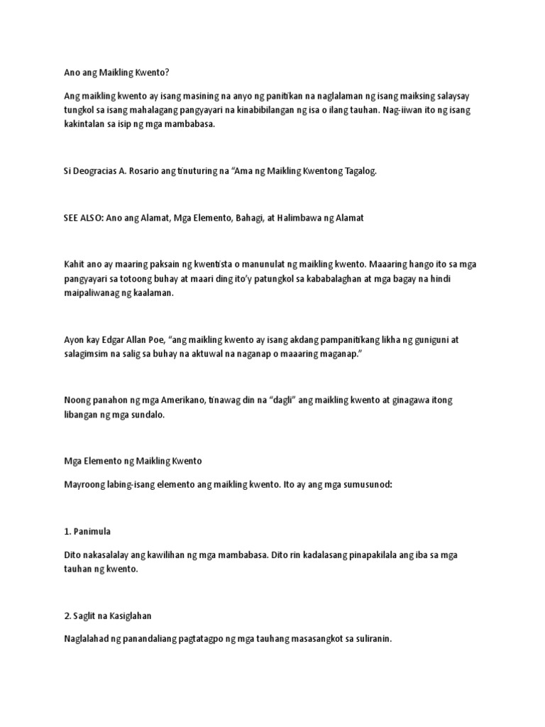 Ano Ang Maikling Kwento Filipino