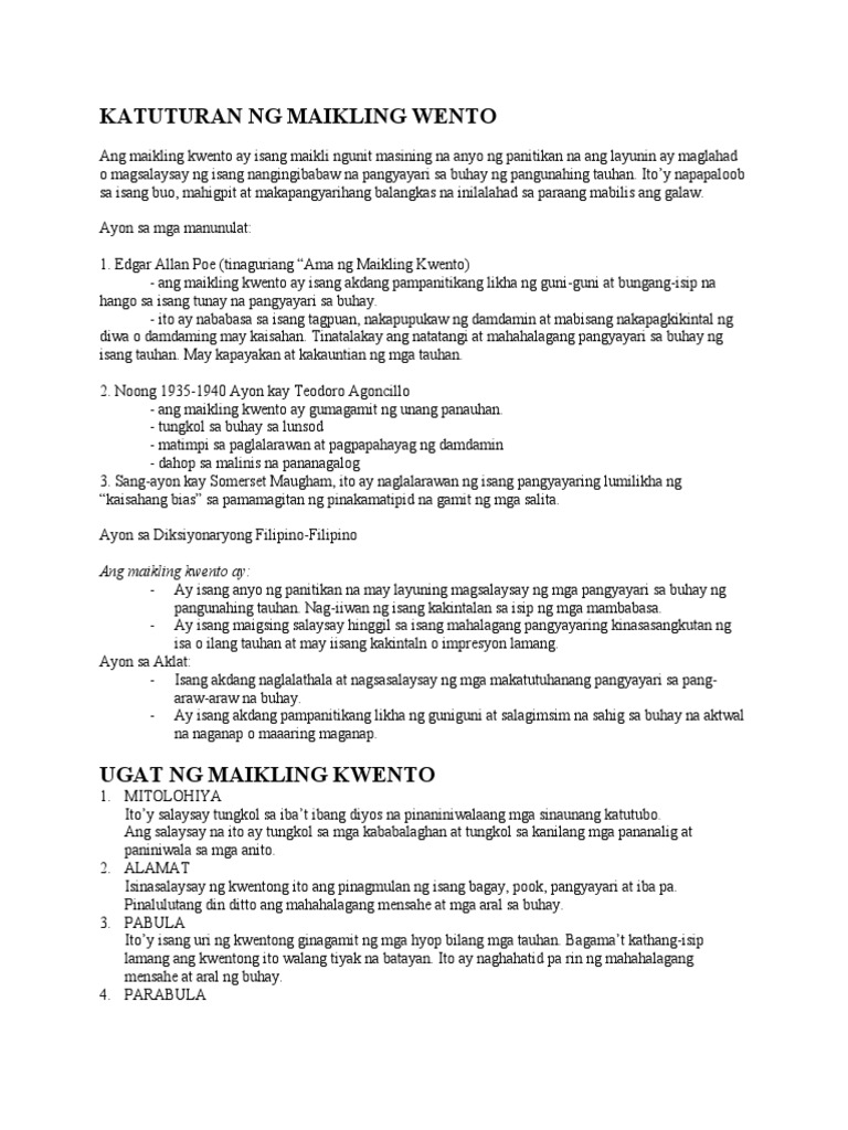 Katuturan Ng Maikling Wento Ang Maikling Kwento Ay