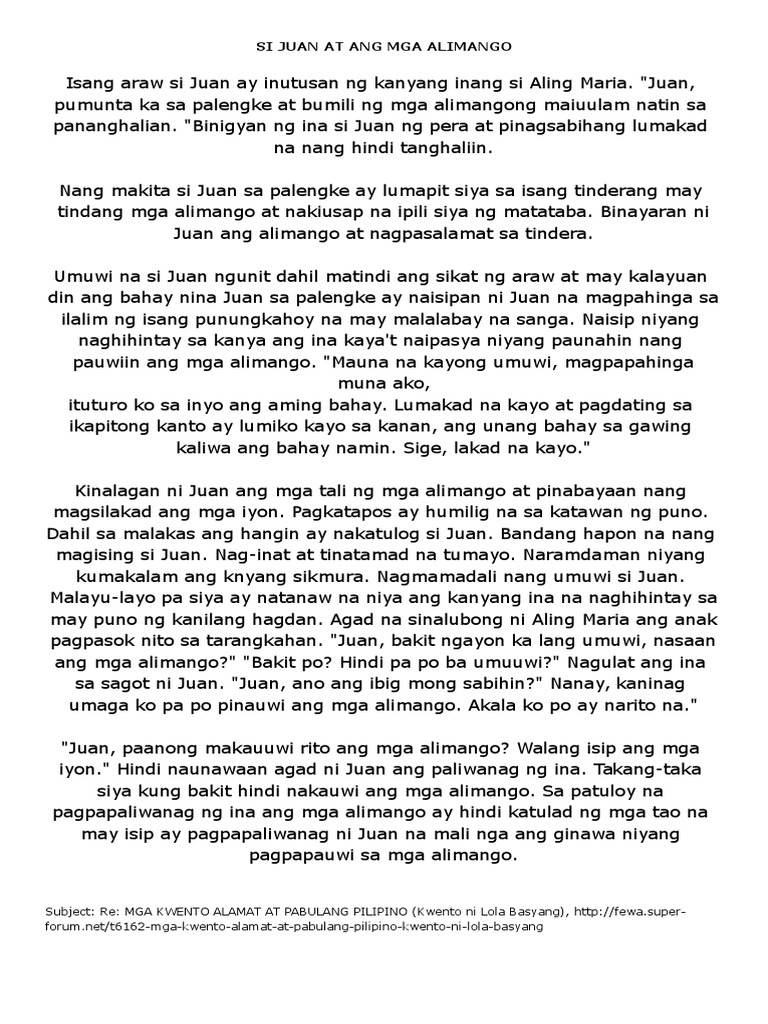 Halimbawa Ng Mga Maikling Kwento Ni Lola Basyang Shekinah S Blog
