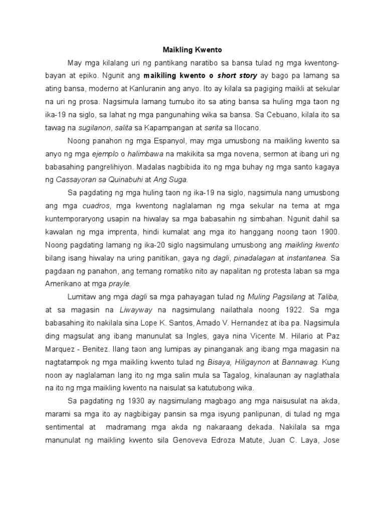 Tekstong Naratibo Maikling Kwento Maikling Kwentong