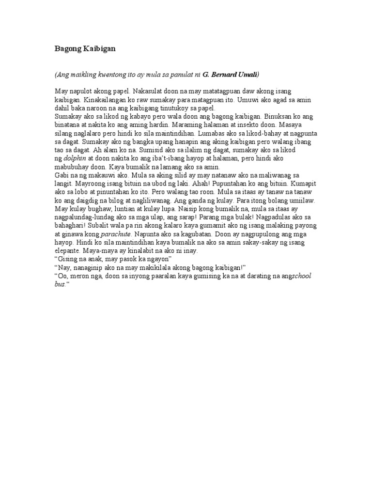 Halimbawa Ng Naratibong Sanaysay Maikling Kwentong
