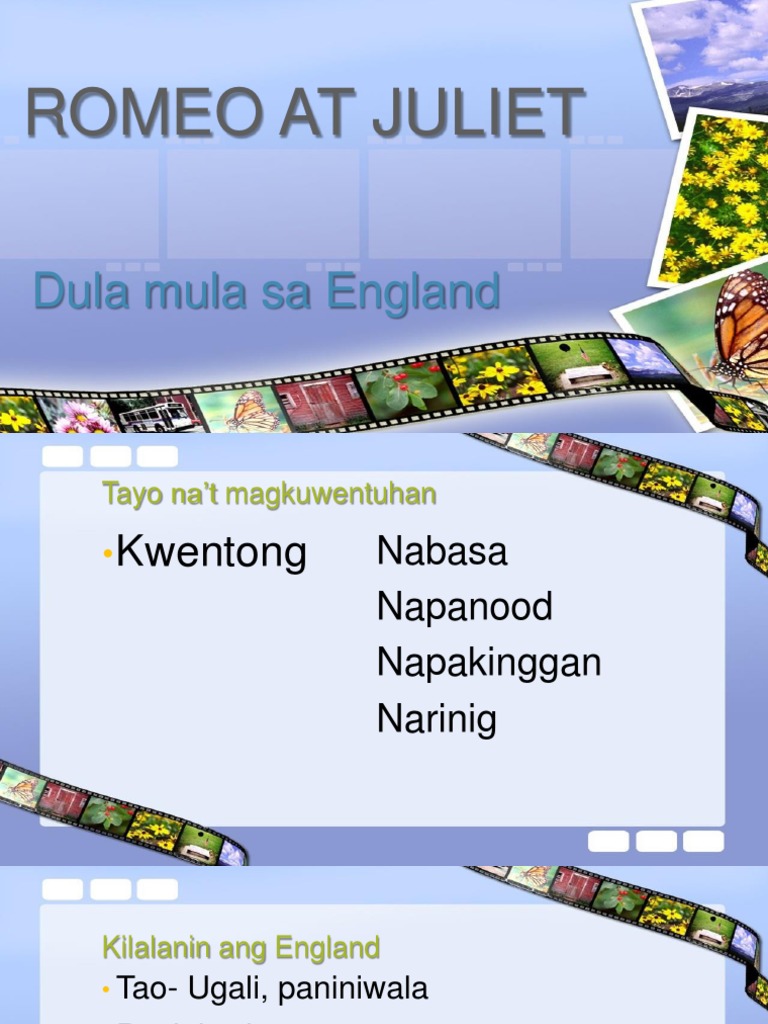 Nakuha ko lamang ito sa isang kaibigan. BUOD NG ROMEO AT JULIETA. Asked by Wiki User.